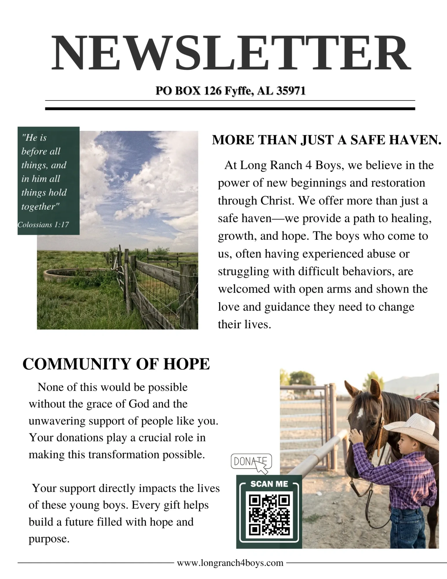 At Long Ranch, we believe in providing new beginnings through Christ.